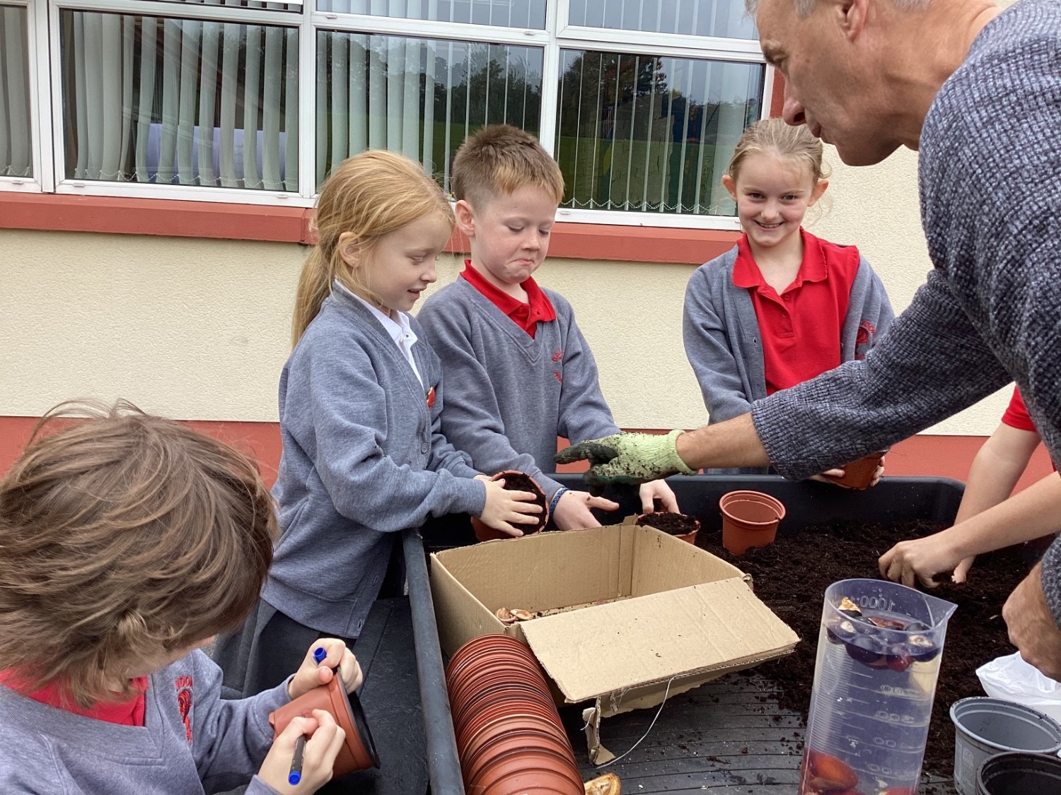 P4 have been finding out all about autumn. They have been looking for signs of autumn in the Rath and around our school grounds. After collecting lots of leaves they created a collage as part of their artwork. P4 are learning how to identify trees and 🍁 leaves. They planted some conkers and acorns. These will be well looked after in our classroom and hopefully we will see them grow into the spring time.
